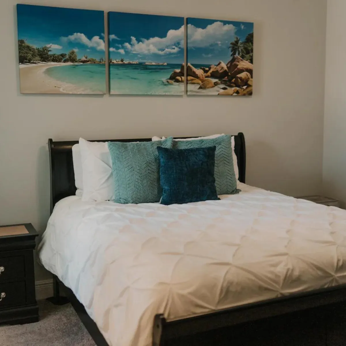 * Four bedrooms with new Serta mattresses, ample closet storage, and smart TVs.